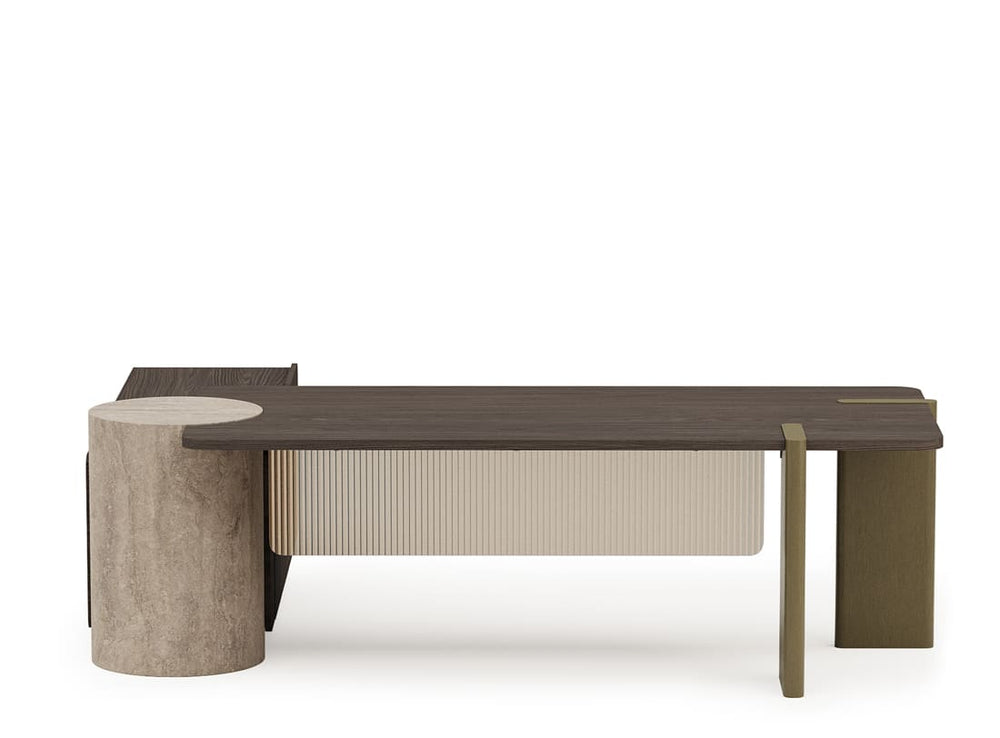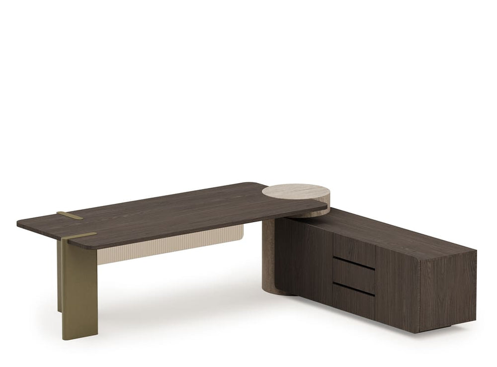 Az AVANE egy vezetői stílusú asztal, amely esztétikát és tartósságot egyaránt kínál, és természetes kőhatású lábdizájnjával és üveg részleteivel vonzza magára a figyelmet. Az asztal elülső felületén található félig átlátszó üvegpanel modern megjelenés mellett biztosítja a magánéletet is. A konzol üveggel borított rekesze a funkcionalitást a dizájnnal ötvözi.