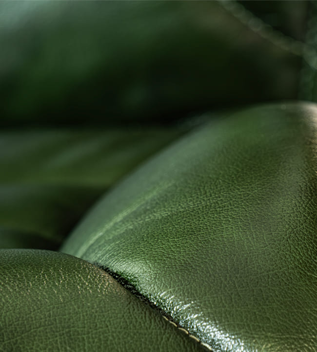 Kárpitozás: Valódi festett marhabőr. (A képen látható színek kis mértékben minden egyes darabnál eltérhetnek, ez a kárpit jellegzetessége festés, gyártás vagy alapanyag színe miatt.)