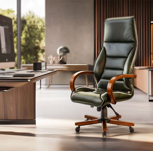 AFFI XXL valódi bőr nagy teherbírású irodaszék 200 KG-ig Fa kartámasz, fa borítású láb
