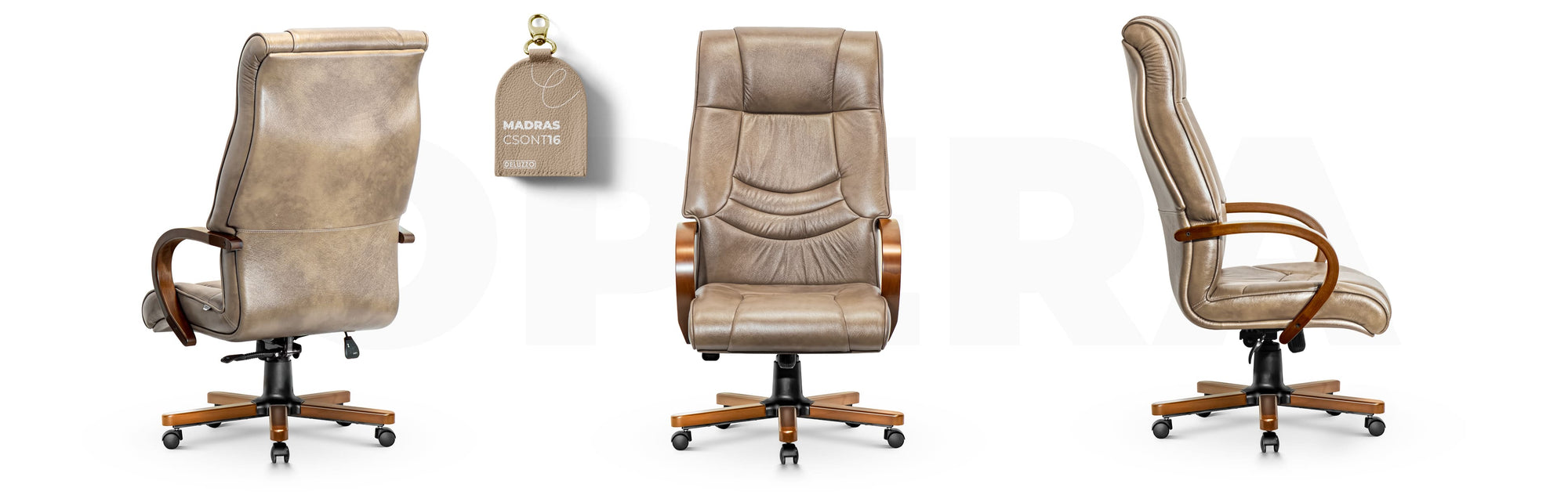 Az Opera vezetői szék elegáns, valódi marhabőrrel van az ülőfelületen és a hátlapon is bevonva, aminek köszönhetően a vezetői szék dísze lesz az irodának. Reprezentatív megjelenésének, praktikus felszereltségének és exkluzív kinézetének köszönhetően az Opera prémium vezetői székek közé tartozik. -