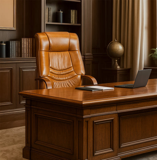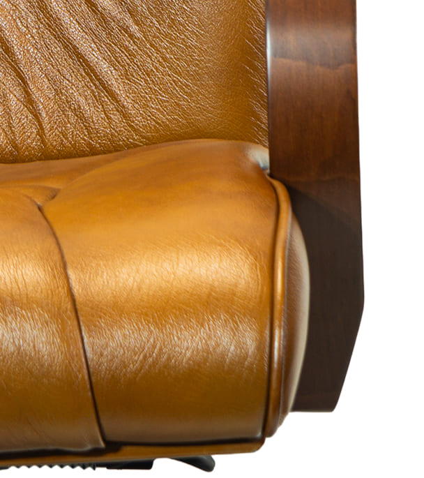 Opera XXXL valódi bőr nagy teherbírású irodaszék 250 KG-ig - Fa kartámasz, fa borítású láb